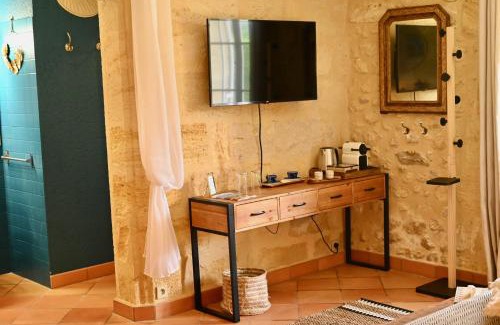 Vue sur les Vignes du Château La Gaffelière - Saint-Émilion Grand Cru is located in Saint-Émilion, just 24 miles from Chaban Delmas Bridge and 24 miles from La Cite du Vin. This property offers access to a terrace, free private parking, and free Wifi. Stone Bridge is 25 miles from the villa and Place de la Bourse is 25 miles away. Featuring garden views, the villa is composed of 1 bedroom and 1 bathroom with a hair dryer and free toiletries. Towels and bed linen are provided in the villa. The property has an outdoor dining area. Guests at the villa can enjoy hiking nearby, or make the most of the garden. Wine and Trade Museum is 25 miles from Vue sur les Vignes du Château La Gaffelière - Saint-Émilion Grand Cru, while Matmut Atlantique Stadium is 25 miles away. Bordeaux–Mérignac Airport is 34 miles from the property.