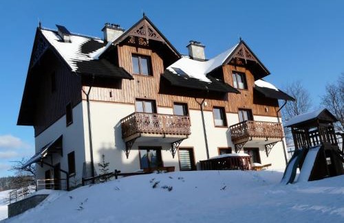 Offering a terrace, W Cieniu Akacji provides accommodations in Jaworki. This property offers access to a balcony and free private parking. The apartment has a picnic area and a sauna. With free Wifi, this 1-bedroom apartment offers a satellite flat-screen TV, a washing machine, and a fully equipped kitchenette with a dishwasher and oven. Towels and bed linen are featured in the apartment. This apartment is allergy-free and non-smoking. Guests can make the most of the warm weather with the property's barbecue facilities. For guests with children, the apartment features outdoor play equipment. Skiing and cycling can be enjoyed nearby, while a ski equipment rental service, ski-to-door access and ski storage space, are also available on-site. Niedzica Castle is 16 miles from W Cieniu Akacji, while Treetop Walk is 26 miles away.