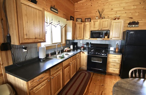 Featuring a spacious main level with 2 bedrooms, a full bath w/shower, full kitchen, dining table, and plush sofas. And don't forget the extra loft, featuring double padded carpet and 3 queen mattress beds. Outside you will find a Campfire pit, picnic table, and fantastic views with miles of walking trails. The cabin has HDTV (70+ channels) w/DVD player, FREE high speed fiber Internet and all the linens are included.