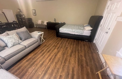 Welcome to our Waco retreat, where an open floor plan combines living, kitchen, and reading areas with a king-size bed, creating a spacious yet cozy atmosphere. A separate bedroom offers a twin bed and TV, perfect for relaxation. There is also a Queen Size Inflatable Air Matress available for you if you need an extra bed. With a full bathroom and laundry room, this compact space is designed for comfort and convenience, ensuring a memorable stay in the heart of Waco.