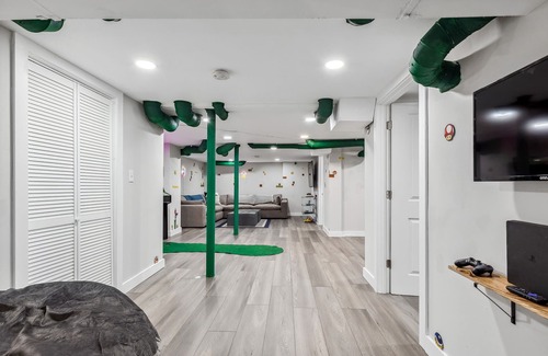 Wade Manor: Game-room, Gym, Office and Fenced in Backyard is located in Cleveland. Wade Manor: Game-room, Gym, Office and Fenced in Backyard provides accommodation, featuring Air Conditioner, TV, Balcony/Terrace, among other amenities. This House features Air Conditioner, TV, Balcony/Terrace, to make your stay a comfortable one.