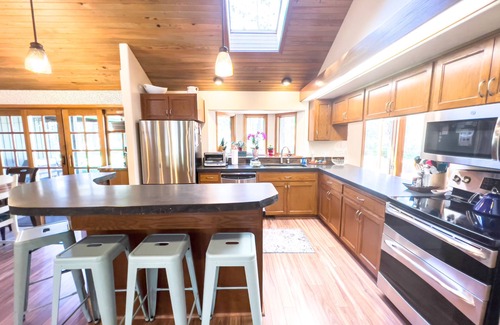 Making memories is easy in this spacious home. Imagine relaxing in the hot tub with your favorite IPA, cocktail, or mocktail while the kids enjoy a movie night in the game room with the projector. Grill that perfect steak on the BBQ, while your kids play in the yard that is surrounded by the National Forest. Who will be the cornhole champion on this year's summer vacation?