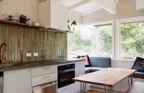 Nestled in a bushclad valley, the cottage is located within walking distance of the famous Raglan Beach and 4 km from Raglan's shops and restaurants. Newly renovated it features a comfortable living area, a fully-equipped kitchen, and a cozy bedroom. There is a fold-out couch available for the little ones to sleep in. Enjoy a soak under the stars in the outdoor bath.