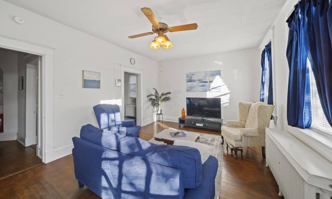 Upstairs unit of charming 100-yr old duplex located down the block from multiple restaurants/bars, plus a gas station and convenience store. The unit is a spacious 1200 sq ft 2br/1bath with well-equipped kitchen. A quick drive or 15 min walk will have you in Scott’s Addition or Carytown for even more food and bar options. Great location for Richmond museums, too.