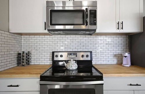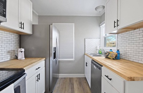 Enjoy a stylish experience at this centrally-located place. Welcome to our whimsical 1000 sqft Wonderland-themed apartment, a unique haven in Columbia's vibrant heart. Situated on the main floor of a charming duplex, this space is perfect for business travelers, Mizzou event attendees, travel nurses, and families. The apartment is easily walkable to Boone Hospital, downtown CoMo, Logboat & the Arcade District. Everything you need for your stay is provided!
