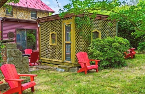 This is a unique property with lots of charm! It is a historic home with a cabin/Victorian home feel. It has many hang out spots both inside & out. Very spacious! Catch up with friends/family on the glider under the pergola, enjoy bird watching from the large front porch, read a book in the sunroom, roast s’mores by the fire pit, relax in the hammock, have a picnic dinner in the gazebo, or reconnect over dinner in the dining room that seats your whole crew! Many places to spread out here!