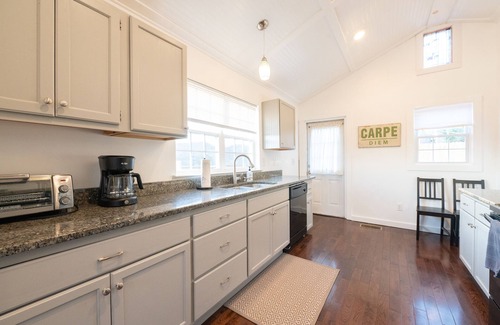 King size beds in both rooms! Two FULL bathrooms. NEW DECK! Stocked with everything you need for the weekend. Laundry and dishwasher available. Sound machine, ceiling fans, large soft towels, great beds with 4 pillows each, coffee and tea cabinet with drip coffee maker and French Press. Large NEW private deck with picnic table and seating for cocktails on nice evenings. View of the city and ridge. The driveway is shared, but the house, deck and one designated parking spot is all yours for your stay!