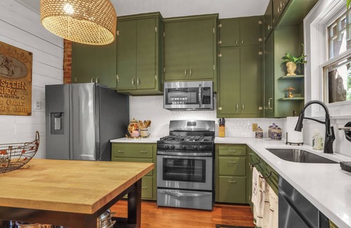 Get away to the beautiful Texas Hill Country & enjoy a relaxing stay at this professional designed 1930's cottage. The cottage features 2 bedrooms and 1 bathroom spacious living room with wood burning fireplace, chef's kitchen and dining room, and outside patio. All nestled in the heart of historic Boerne, Texas. The fully equipped Kitchen has a gas cooktop, microwave, & dishwasher and is great for guests to prepare meals or snacks if desired! 2 Bedrooms, one with a king size bed and the other has queen size bed, additional sleeping on queen size sleeper sofa. Within walking distance to unique gift & antique shops, breweries, dining, and more. 1/2 Block off main street & the quaint Cibilo Creek! COME STAY WITH US!