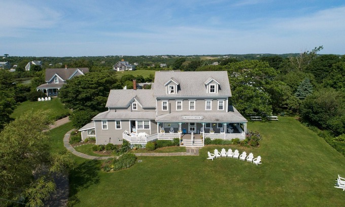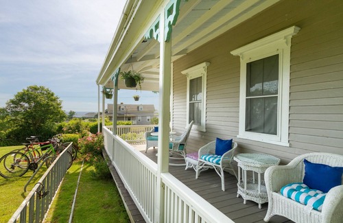 Experience Block Island the way travelers did a century ago in one of the oldest houses on the island. Situated high on a hill, this former Inn is just two blocks from town, but feels serenely separated from the BI hustle and bustle. Above and away, but close to everything: Bike to beaches during the day, walk to all in town dining at night. Or simply sit on the wrap-around porch and watch as boats make their way in and out of Block Island Harbor.