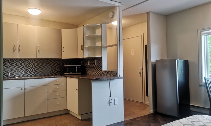 Firehouse Lodge Newly Renovated with Walk out Deck, Full Bathroom, Queen Beds, Wifi, 50″ LED Satellite Tv, Fridge, Microwave.