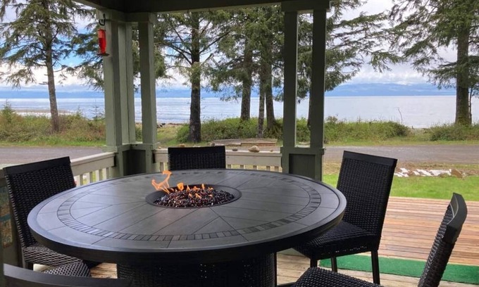 Walk out the front door, across a grass lawn and onto a sandy beach. Watch the bald eagles and sea otters play. Feel the warm sun on your face and the cool sea breeze through your hair. Listen to the waves on the beach. Feel the sand between your toes. Remember what fresh air smells like. Reunite with nature and sooth your soul. Relax on the deck with your favorite person in one hand and your favorite drink in the other and enjoy the sunset and the sounds of nature.