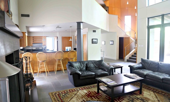 This completely renovated two story home has a two story great room for the entire family or group to get together in, 4 bedrooms, 3 1/2 baths. Two master bedroom suites (one with king bed and the second, with both a queen bed and a queen sleeper sofa), two additional bedrooms, one with two twin beds, and a third with bunk beds (with full size mattress on bottom and twin on top).