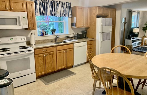 Inside our home, you will find an open and cozy living area with a flat-screen TV, with streaming capabilities, and comfortable couches, fully equipped kitchen with eat-in dining area, a formal dining room, and a living room with a wood fireplace. There are three bedrooms and one full bathroom, one with a king bed, one with a queen bed and the third with twin bunk beds. Step through the sliding doors onto our deck, where you will find plenty of outdoor seating, a gas grill, and an enclosed outdoor shower. Other amenities include WiFi, central A/C, a washer/dryer in the basement, and sheets and bath towels provided at no extra cost (note renter to make the beds). Such a great location and comfortable living space make Salty Shores an amazing find for your next Cape Cod getaway!