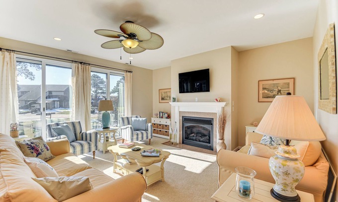 Furnished Patio w/ Retractable Awning | Fireplace | Marina & Bar On-Site