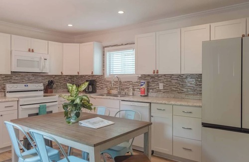 Plenty of private parking for 4 cars in the driveway along with a 1 car garage which fits 4-6 motorcycles. All dishes, cutlery and kitchen necessities will be stocked to enable you and your guests to cook full meals. A short 5-7 minute walk will get you to the beach. After a full day of fun and relaxation at the beach, get ready for some fun night life at the World Famous Daytona Beach Boardwalk filled with amusement rides and dozens of attractions for all ages!