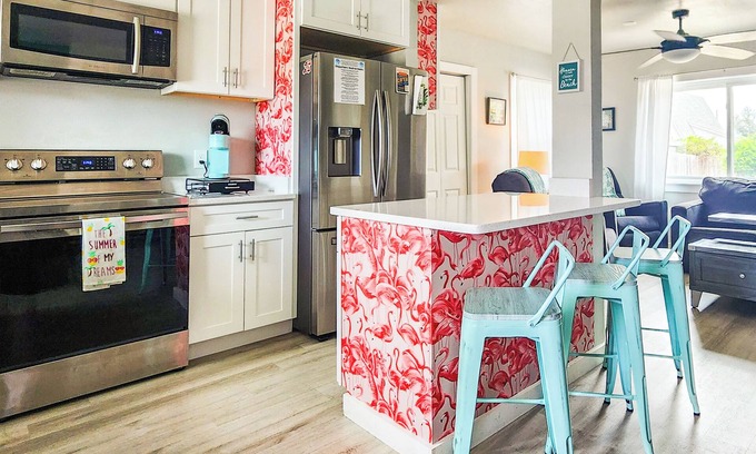 High Tide Beach Cottage, offered by High Tide R and R, is the perfect beach house for small families & couples! Just a short, 0.2 miles walk, to public beach access #12 and walking distance to Buster's, just a block away! BYOB - Bring Your Own Boat {or motorcycle trailers} as this home is equipped with a driveway plenty long to accommodate! One small dog per reservation is permitted, pending weight/breed approval from host, for insurance purposes.