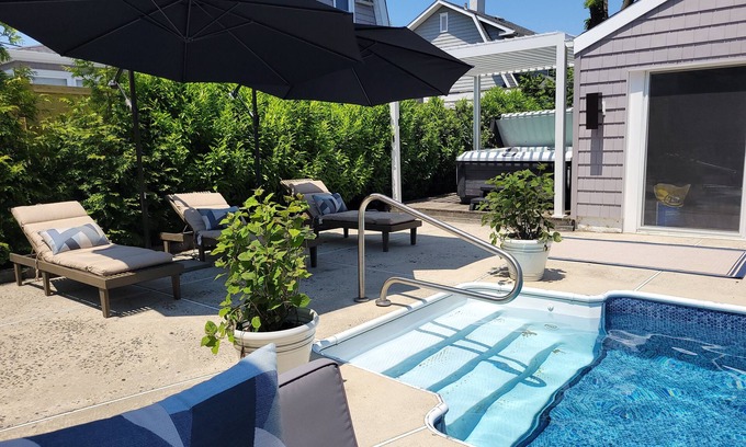 South Bradley Beach cottage with pool and hot tub located 4 blocks to the beaches of Bradley Beach and Avon-By-The-Sea.