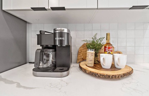 Complimentary WiFi, live TV and coffee. The kitchen comes fully loaded with stainless steel appliances such as a microwave, fridge, stove and dishwasher along with glasses, mugs, dishes and cutlery.