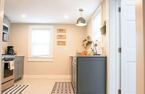 Fun, Funky, Modern eclectic apt filled with cozy character. Renovated December 2019. Located 4 min walking from the beginning of Thames St. or walk 10 mins to Broadway, the new "hipster hot spot" filled with shops, restaurants, bars and coffee joints. New back deck added in Jan 2024 (photos to come). 5min from the base of the bridge. Very large full bathroom, brand new fully stocked kitchen, new appliance, quartz countertops. Locally owned & operated.