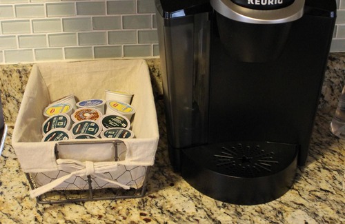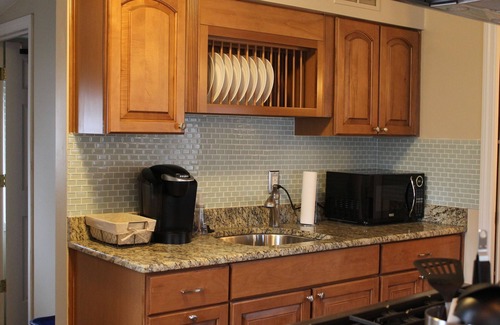 Updated kitchen boasts granite counter tops, new appliances, and Keurig coffee maker.