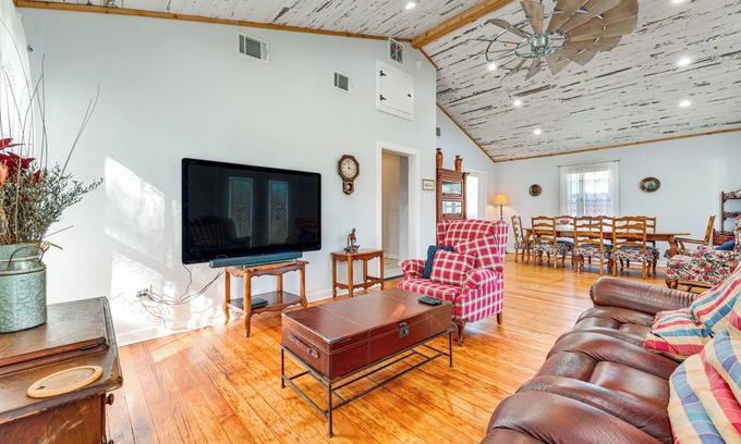 Walk to Dtwn Shops & BBQ: Home w/Fenced Yard! is located in Lockhart. Walk to Dtwn Shops & BBQ: Home w/Fenced Yard! provides accommodation, featuring Pet Friendly, Fireplace/Heating, Air Conditioner, among other amenities. This House features Pet Friendly, Fireplace/Heating, Air Conditioner, to make your stay a comfortable one.