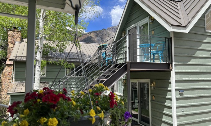 San Juan Chalet Cabin is located just 1.5 blocks from main street. So you can walk to everything in Ouray even the Hot Springs! San Juan Chalet Cabin has wonderful mountain views and a nice private yard surrounded by Lilac and Aspen trees. The Lilacs bloom in late May and early June. Our 'Cabin' is a favorite among return guests. The Secret Garden B&B is directly to the west. We have a picnic table and grill so you can enjoy your meals outside and soak in the beautiful mountain scenery. We also have 2 King hotel style rooms on site please email us for availability of these rooms.