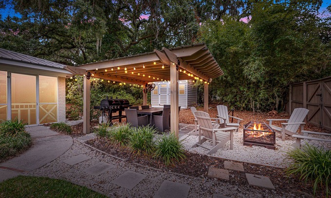 Walk to Famous BBQ Firepit Nights St. Simons Island Rental | House in St Simons Island