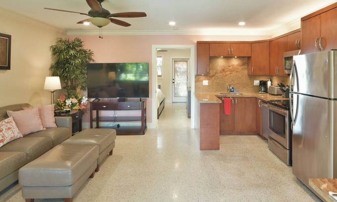 Walk to GAY Wilton Drive, Pool, King Bed, Kitchen, Living Room, Patio, WiFi, #5 is located in Wilton Manors. Walk to GAY Wilton Drive, Pool, King Bed, Kitchen, Living Room, Patio, WiFi, #5 provides accommodation, featuring Security/Safety, Bedding/Linens, Fireplace/Heating, among other amenities. This Apartment features Security/Safety, Bedding/Linens, Fireplace/Heating, to make your stay a comfortable one.