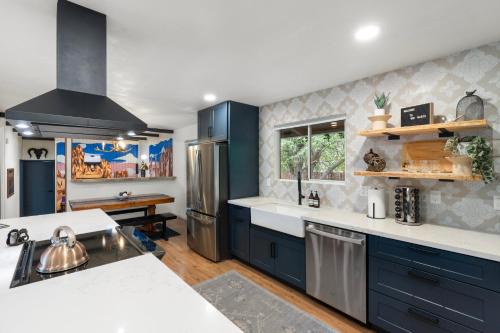 A recently renovated vacation home, Walk to GC Train Depot and Route 66, king beds, game room, BBQ, firepit offers accommodations in Williams. There's an outdoor fireplace and guests can use free Wifi and free private parking. This vacation home includes 4 bedrooms, 2 living rooms and a flat-screen TV, an equipped kitchen with a dining area, and 3 bathrooms with a walk-in shower and a washing machine. Guests can take in the ambience of the surroundings from an outdoor dining area or keep warm by the fireplace on colder days. The vacation home offers bed linen, towels, and laundry service. There is an on-site coffee shop. For guests with children, the vacation home features outdoor play equipment. Guests at Walk to GC Train Depot and Route 66, king beds, game room, BBQ, firepit can enjoy darts on-site, or go skiing or hiking in the surrounding area. Flagstaff Pulliam Airport is 35 miles from the property.