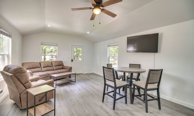 Walk to Lake: Cozy Grove Cabin w/Fire Pit is located in Grove. Walk to Lake: Cozy Grove Cabin w/Fire Pit provides accommodation, featuring Air Conditioner, Parking, Pet Friendly, among other amenities. This Cabin features Air Conditioner, Parking, Pet Friendly, to make your stay a comfortable one.