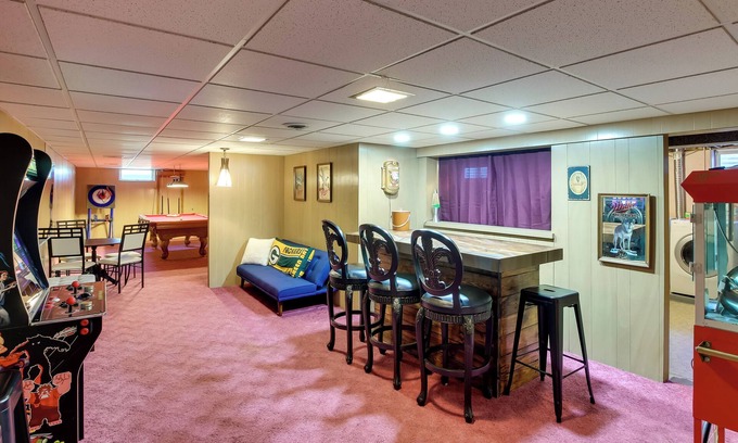 Who wouldn’t want to be steps away from where the Green Bay Packers play? This 3-bed, 2.5-bath vacation rental is a sports family’s dream! Spend your days shooting pool in the game room, grilling out on the patio, or adventuring at Bay Beach Amusement Park. As night falls, gather around the fire pit or enjoy a family movie night on the Smart TV with some freshly popped popcorn. Book this home now!