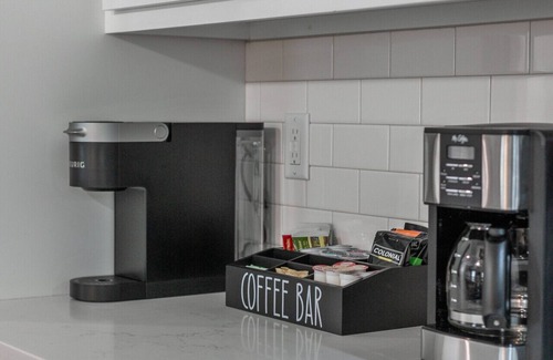 Enjoy your morning beverage of choice at the coffee and tea bar! A Keurig and a 12 cup coffee maker are available; we provide a starter set of ground coffee, k-cups, tea, creamer, sugar and stevia!