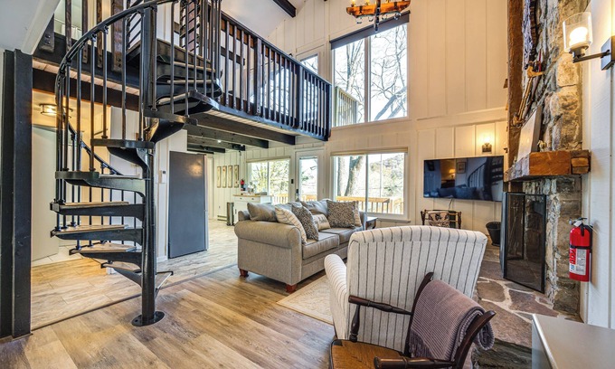 Rustic charm meets modern convenience in a seamless blend at this Fairfield, PA, vacation rental. Whether you want to get out on the ski slopes or step back in time at Gettysburg, you’ll love returning to this 3-bed, 2-bath home after your adventures. Start your days watching the sunrise over the lake and spend evenings cozying up by the fireplace with loved ones.