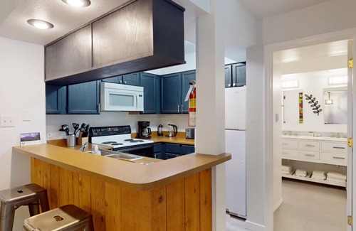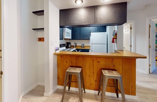 Experience the enchanting landscapes of Angel Fire, New Mexico, at Mountain Spirit 217. This newly renovated 1-bedroom/1-bathroom vacation rental accommodates up to 4 guests. The well-equipped kitchen features a drip coffee maker, electric kettle, and French press for coffee lovers as well as a crockpot for convenient culinary adventures. The condo also has a yoga mat, foam rollers, and various bands available to revive your sore muscles after adventures in the great outdoors. Mountain Spirit 217 is a short 5-minute walk to the main resort area and Chile Express Lift; great for skiers and snowboarders in the winter and mountain bikers in the summer/fall. The Mountain Spirit condos also feature elevator access, covered parking, and locked storage for both skis and bikes. Create cherished memories in this inviting retreat. Reserve your stay at Mountain Spirit 217 to unlock the magic of Angel Fire.