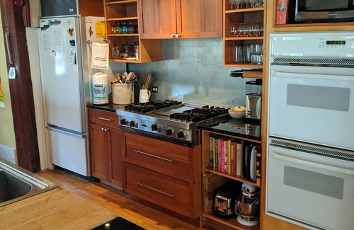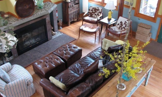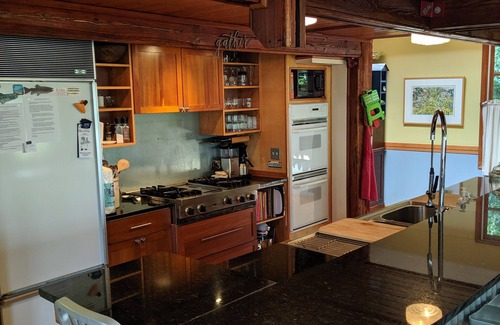 Step into the great room you are greeted by a recently refurbished home, features include an open post and beam floor plan, including a great room with vaulted ceilings, fireplace, and gourmet kitchen. The kitchen was renovated in 2012 and now includes a Viking cook-top with griddle, double oven, microwave, Cuisinart, stand up mixer and many kitchen utensils. The large kitchen island features a bi-level granite counter top and seating for four, stainless steel dishwasher, double basin stainless steel sink with a restaurant-style sprayer faucet. In the dining area, you will enjoy meals on the 12-foot long custom made cherry table. The living room has a fireplace, complete with granite surround, gas starter, ample wood storage. Enjoy a fire and great conversation in the over-sized Restoration Hardware leather couch with matching ottomans. The room also has a 42' Samsung Smart TV complete with a Netflix subscription for your use. The house sound system has an auxiliary cable to allow you to plug in your music via your player.