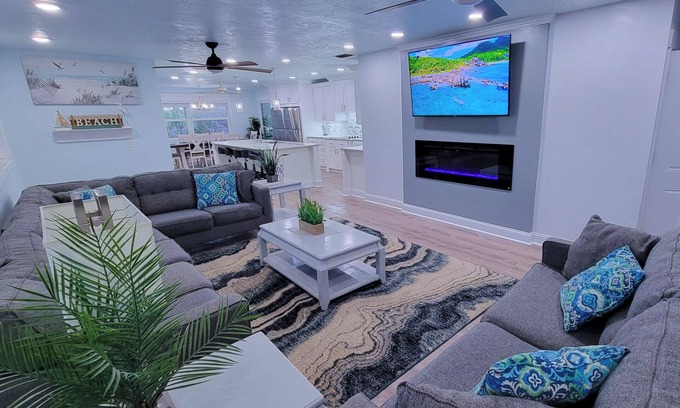 Your cozy getaway awaits in Siesta Key at this beatiful vacation rental. With 7 bedrooms, 2 kitchen, game room, theater room, 3 bathrooms and 2 family room.