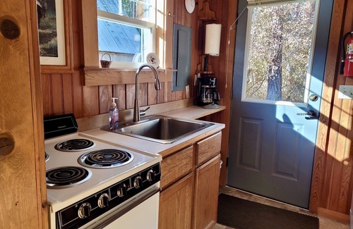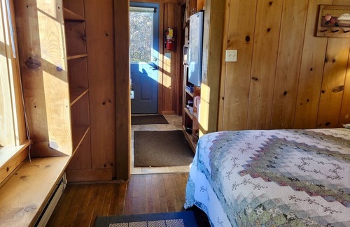 Sweet and charming Schoolhouse Cabin is just steps away from the ski/bike trail. It is a one bedroom, one bath cabin. There is one queen bed and a hide-a-bed in the living room. The small efficient galley style kitchen allows for homemade meals during your stay. There is wifi, a tv and beautiful surrounding views.
