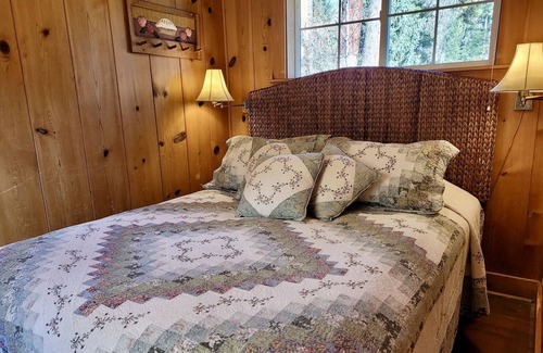 Schoolhouse Cabin is one of three cabins nestled in a grove of fir and pine trees with dramatic views of the Cascade Mountains. Feel your stress melt away as you watch deer graze near the deck of your private cabin. Walk to the ski/bike/walking trail and enjoy the best of the Methow Valley.