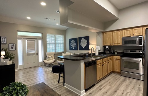 The beach is across the street (short walk). A beach cart is provided. There are several public beach access points within driving distance. The condo is located at Villagio Towne Center with several restaurants and shops. It's centrally-located to all activities in Perdido Key. Relax and enjoy our 2 bedroom, 1 bath, condo.
