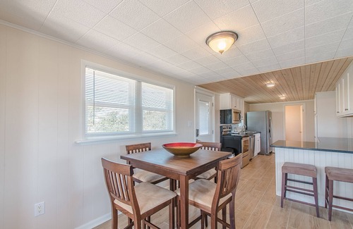 Located on a quiet street on a private wooded lot just a block off the beach!! Easy walk to the beach with neighborhood beach access! Beach is pet friendly (dogs must be kept on a leash). This comfortable cottage has 2 bedrooms and 1 bathroom. The living room has a queen sleeper sofa for accommodating extra guests. The kitchen has granite countertops, all major appliances, and is stocked with basic utensils/kitchenware needed to prepare a meal. There is an office nook with a desk. Spacious, wrap-around, outdoor deck for sunbathing and relaxing. There is a convenient, outside shower for use after the beach.