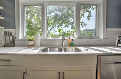 Modern, clean, and sleek! Do not let the uncluttered counters and tables deceive you, this home (kitchen) is fully stocked with everything you need to make your stay in Chattanooga comfortable, cozy and unforgettable. Family-friendly with full size 200+ classic arcade game, board games, card games, and dining table that seats 8. Decks on the main floor and off the master bedroom with amazing views. Out front, you'll find comfortable adirondack chairs around a glass fire table and a gas grill.