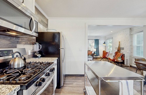 Fully Stocked Kitchen – Includes fridge, stove, oven, coffee maker ☕, and blender for smoothies or morning brews.