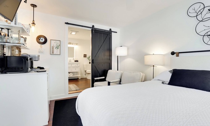 Surrounded by small-town charm, vineyards, and outdoor activities, this luxuriously restored Finger Lakes vacation rental — a 1-bath studio — is the perfect spot for a couple’s getaway. Start the day with a walk to Village Square, then explore Watkins Glen State Park or go kayaking on Keuka Lake. Ready for some quiet? Cozy up in the ‘Ernie & Doris King Suite’ for a movie night.