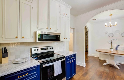 You’ll find all of the best hotspots of ‘Rose City’ right outside your door at this Tyler vacation rental. The modern 2-bedroom, 1-bath home is conveniently located just a quick walk from the square, medical centers, and museums. Have your morning coffee in the sitting room, then go for a day of fun at the Caldwell Zoo, stroll through the beautiful Tyler Rose Garden, or head up to Tyler State Park to get out on the lake.