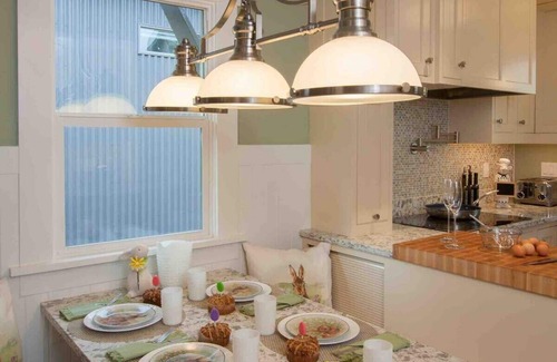 Welcome to historic Wallingford! Our house has 5 steps to the front door which opens to a comfortable living room with 1924 period charm. The adjacent kitchen was remodeled recently with induction cooktop (safe for kids), pot filler, and butcher block cutting board that it pleasant for food preparation. On this floor are two bedrooms with queen beds and lots of character. Between the two bedrooms is a bathroom which was also recently remodeled that has a glass enclosed shower and laundry chute to the laundry room downstairs - making laundry easy. There is a large private room upstairs with a sitting room, workstation, and TV from which French doors open to a small plexiglass enclosed balcony. On the bottom floor is a sitting room with a large TV. The primary bedroom with a king bed is adjacent to the sitting room and has the primary bathroom with heated floors and a large, jetted tub, large glass enclosed shower and 4-person cedar sauna making the Seattle winters much more pleasant. The 5th bedroom is also downstairs and has a single bed with lots of storage and a dresser. The downstairs back door has a small dog door, and the property is fully fenced and safe for dogs who are not determined diggers. There is another back door from the kitchen with a Dutch door which opens to a small area with a grill. The front and side yards are fully stonescaped and with a sitting table and chairs make for pleasant evening summer meals. Under the wisteria covered pergola along the side yard is a hammock (which will be taken down during winter months but can be made available to you). The house is walking distance to too many restaurants, coffee shops and parks to mention. Come relax and enjoy all this special home has to offer.