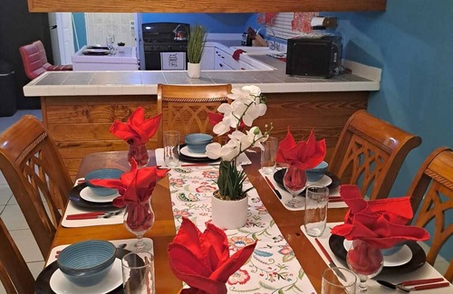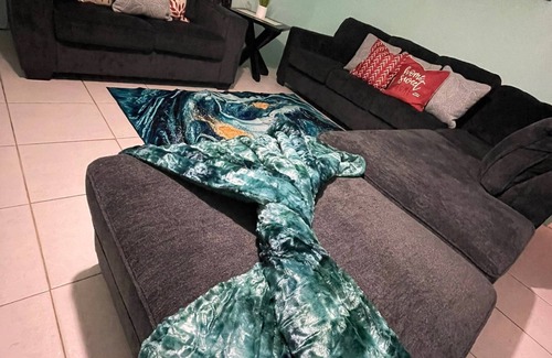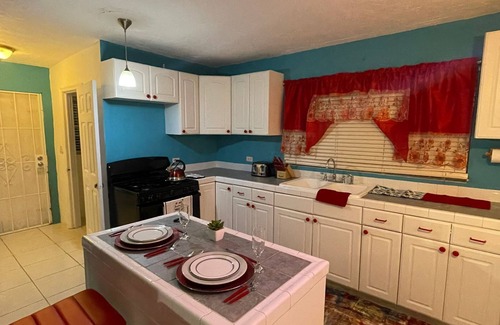 This house in Imperial Park (east) is absolutely lovely! It offers 3 spacious bedrooms and 2 bathrooms, making it perfect for a comfortable stay. You'll find a fully equipped kitchen and a laundry room, providing all the convenience you need. Stay connected with WiFi and enjoy the Smart TVs with Netflix, Prime Video, Nord VPN, and Flow TV. The master suite features a king bed, adding a touch of luxury to your stay. With the ability to accommodate up to 10 people, it's great for larger groups. Self check-in is available, and parking is provided on the premises. Don't forget the large backyard, perfect for relaxation or outdoor activities. The nightly rate is $350, with weekly and monthly rates available at $1,800 and $6,000 respectively. To book, please contact Shenique at 376-3940. Remember to bring your ID for all bookings. Enjoy your stay!