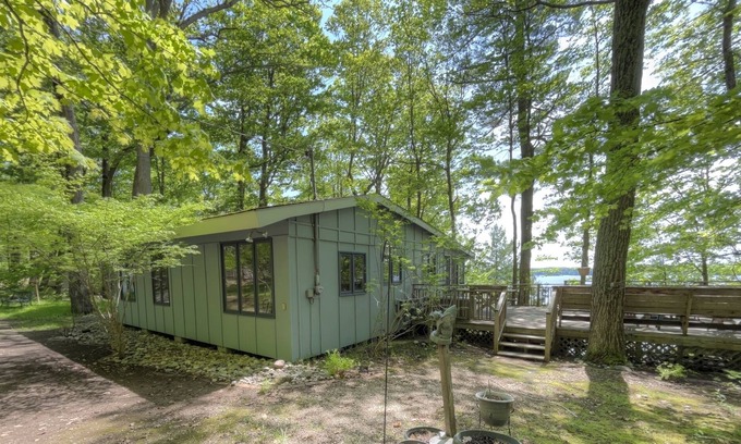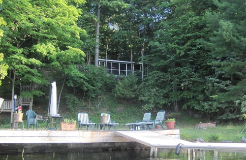 Situated in old growth forest, with stunning views of the Rideau from the large private deck. A magnificent waterfront, with fabulous swimming and kayaking, this is a family friendly, pet friendly, cottage that accommodates 9 people.