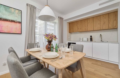 Tastefully designed, spacious apartment has the capacity to accommodate 6 people! The apartment is distinguished by its aesthetic and modern design and more than 67-square-meter space. The apartment's elegant design and high-quality furnishings guarantee a comfortable and memorable stay. The apartment has been richly equipped with multimedia such as a TV with access to almost 300 digital channels (including 3 HBO channels), a Naim wireless music system or ultra-fast fiber-optic internet. There is also a sunny balcony with garden furniture - a perfect place to relax after a day of sightseeing in Wroclaw. In addition, from the living room and loggia there is a view of Ostrow Tumski, Olawa Promenade and Grunwald Square. For a good start to any stay, the apartment comes with complimentary toiletries, towels and linens. A parking space is also available in the reservation price.