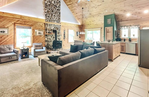This property features an array of amenities meant to make your stay enjoyable including year-round fun in the indoor pool. The flagstone patio boasts a built-in hot tub, gas grill, picnic-style dining and lounge seating. Gather around the fire pit in the evenings and relax under a starry sky as you recount the day’s adventures. Or head to the game room and engage in a little friendly competition with a game of pool. With a blend of modern comforts and rustic charm, Wander Through the Woods truly serves as a haven for tranquility amid nature.