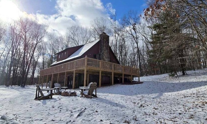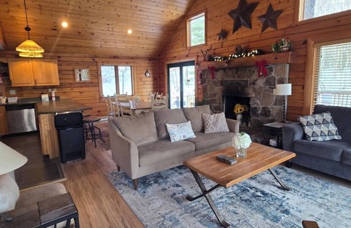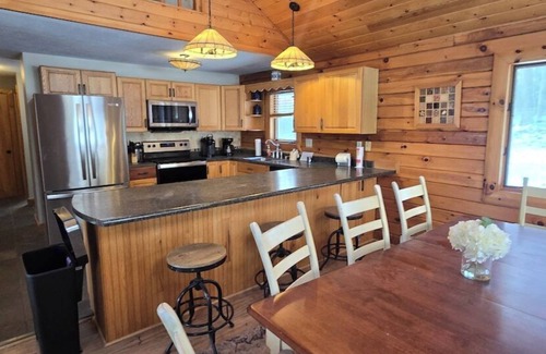 UNDER NEW MANAGEMENT! This home is a perfect retreat for families, friends, and furry companions alike. This charming 3-bedroom, 2.5 bath home offers a blend of rustic charm and modern comfort. Two of the bedrooms are located on the main floor while the third is in the loft bedroom upstairs. This home offers newly remodeled kitchen and bathrooms for your comfort and convenience. Outside, step onto the spacious deck, complete with a gas grill for BBQ's, plenty of seating for outdoor dining, and a relaxing hot tub for starlit soaks. The large yard is ideal for games and gatherings, and the firepit area invites you to toast marshmallows and share stories under the night sky. Bring your furry friends! We welcome up to 2 well-behaved dogs to join in the fun. Whether you're looking for a peaceful escape or an adventure-filled getaway, Wandering Woods is your home away from home. Book your stay today and create unforgettable memories! This home does not have cable tv. There is a strict 2 dog limit. Max. parking spaces: 6